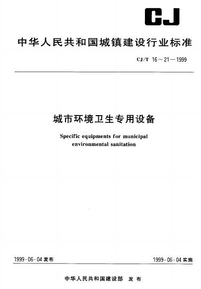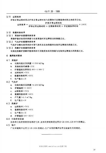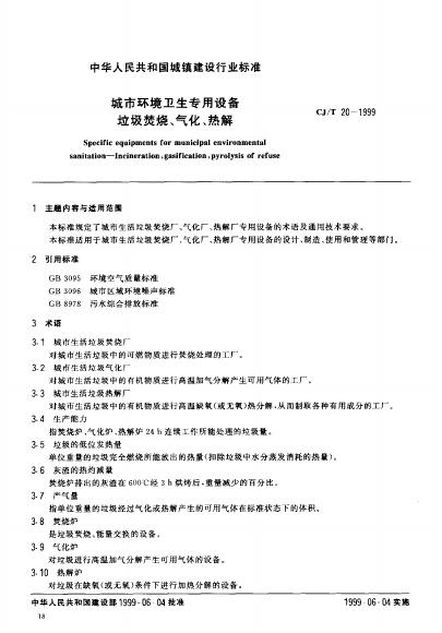 CJ/T 20-1999 城市环境卫生专用设备 垃圾焚烧、气化、热解