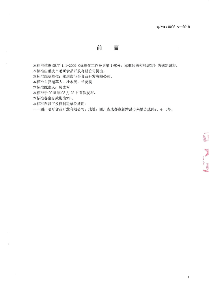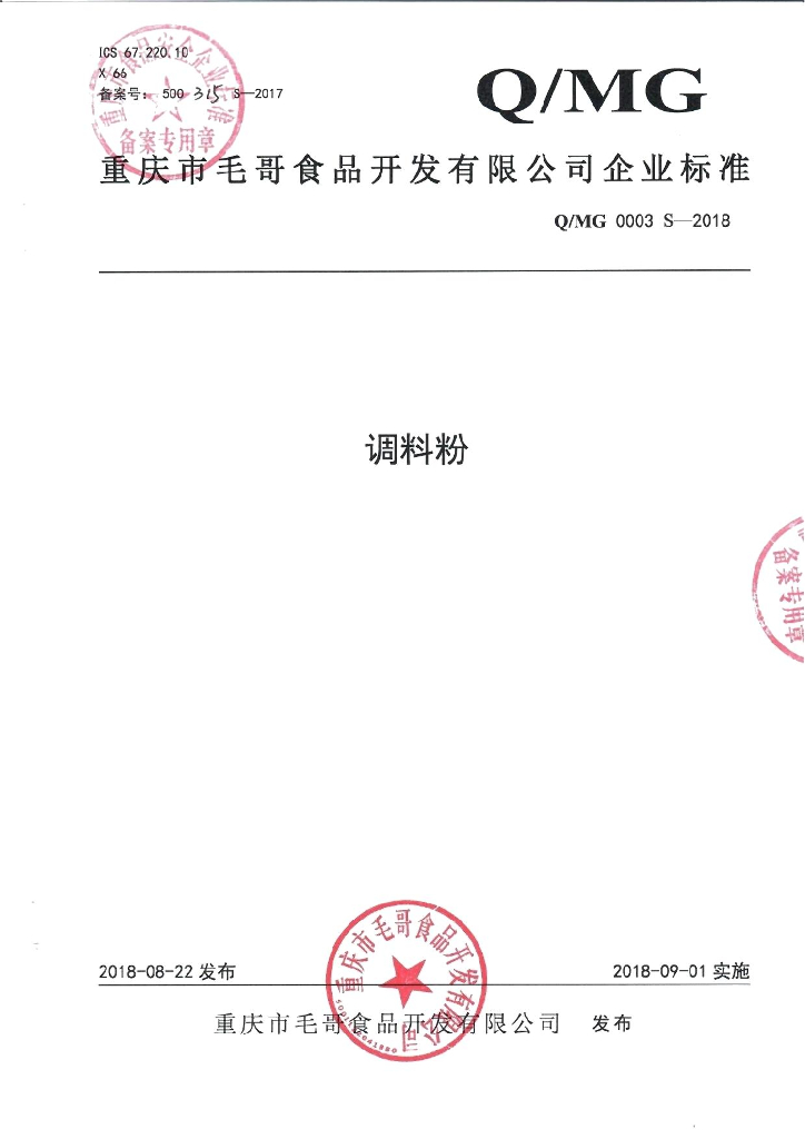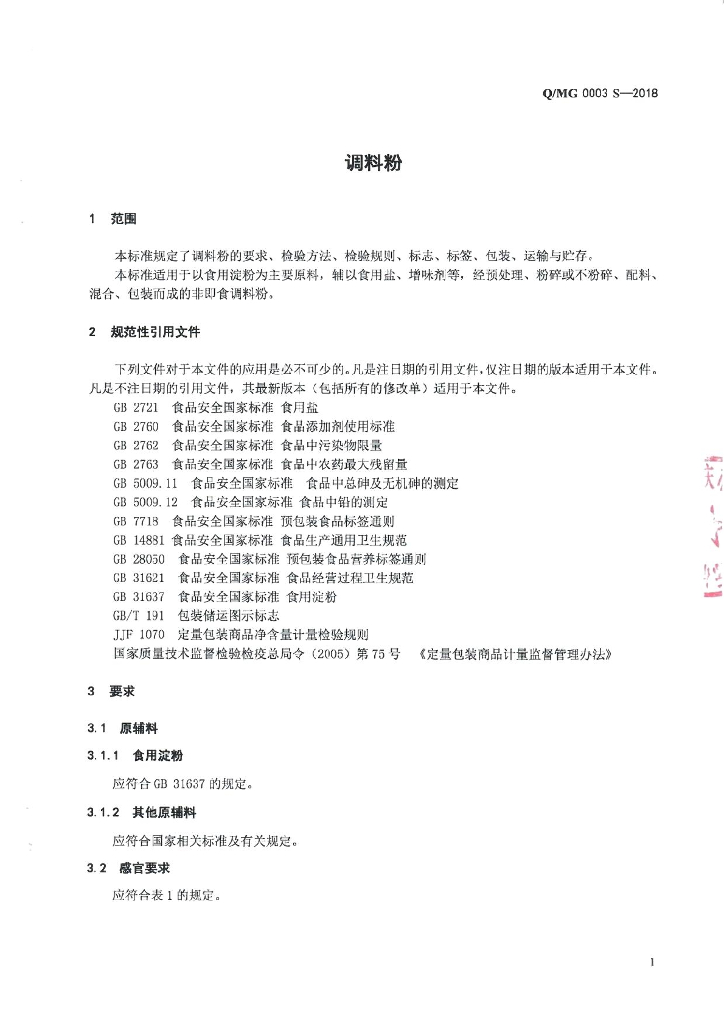 Q/MG 0003S-2018 调料粉