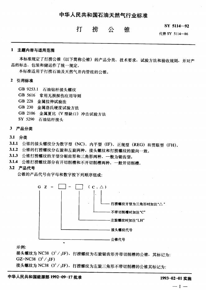 SY 5114-1992 打捞公锥