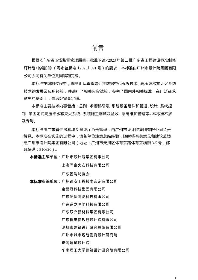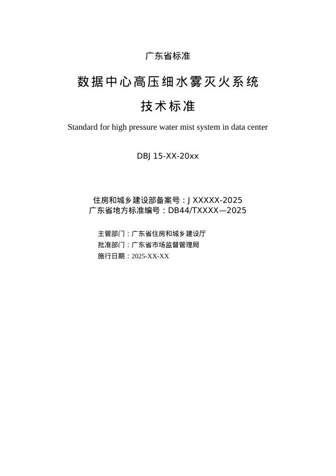 DBJ15 XX-202X 数据中心高压细水雾灭火系统技术规范(征求意见稿)