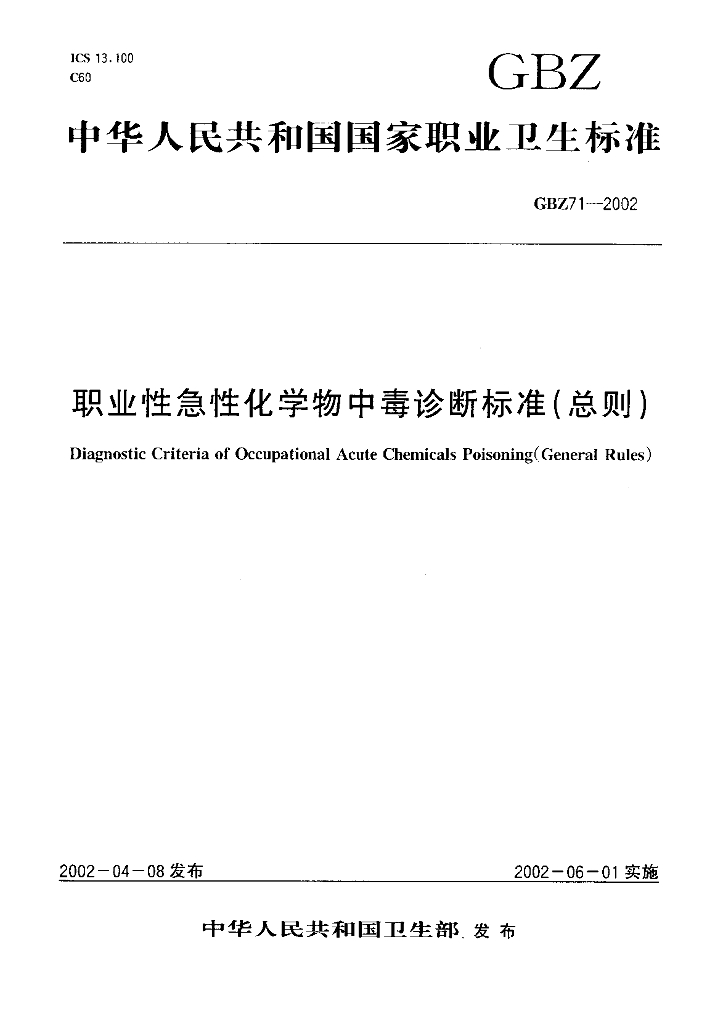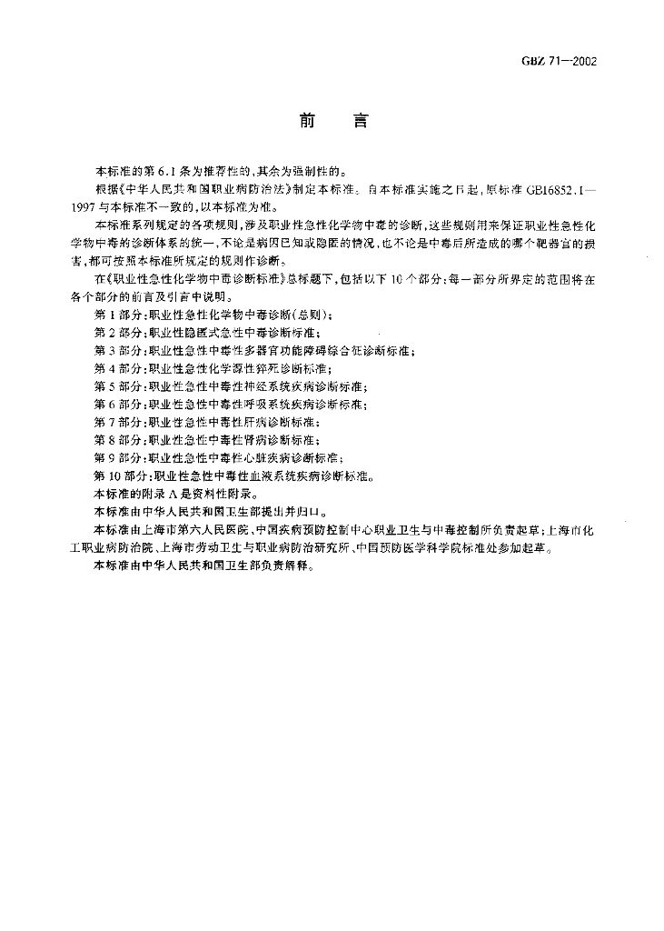 上海市第六人民医院、中国疾病预防控制中心职业卫生与中毒控制所、上海市化工职业病防治院、上海市劳动卫生与职业病防治研究所、中国预防医学科学院标准处