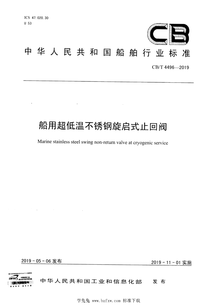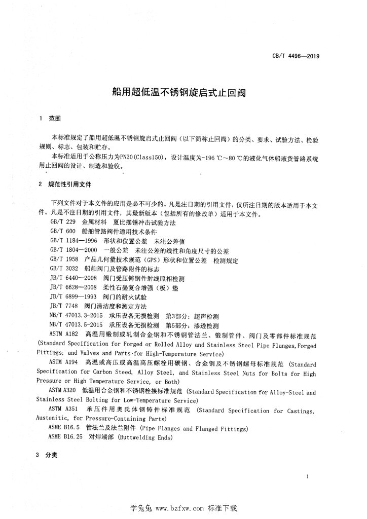 CB/T 4496-2019 船用超低温不锈钢旋启式止回阀