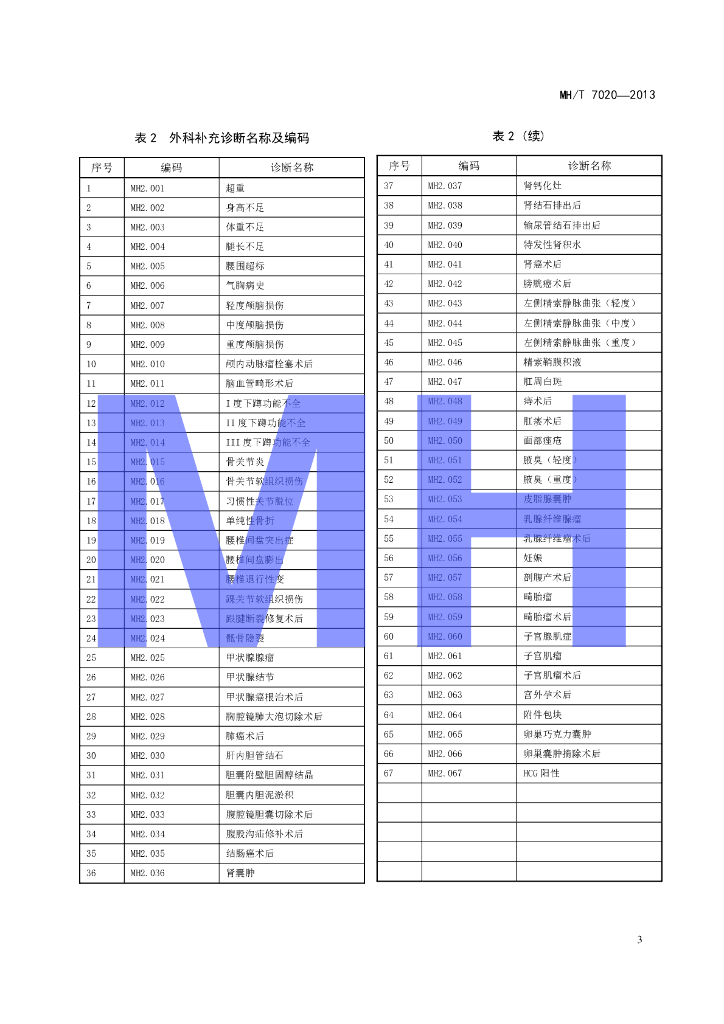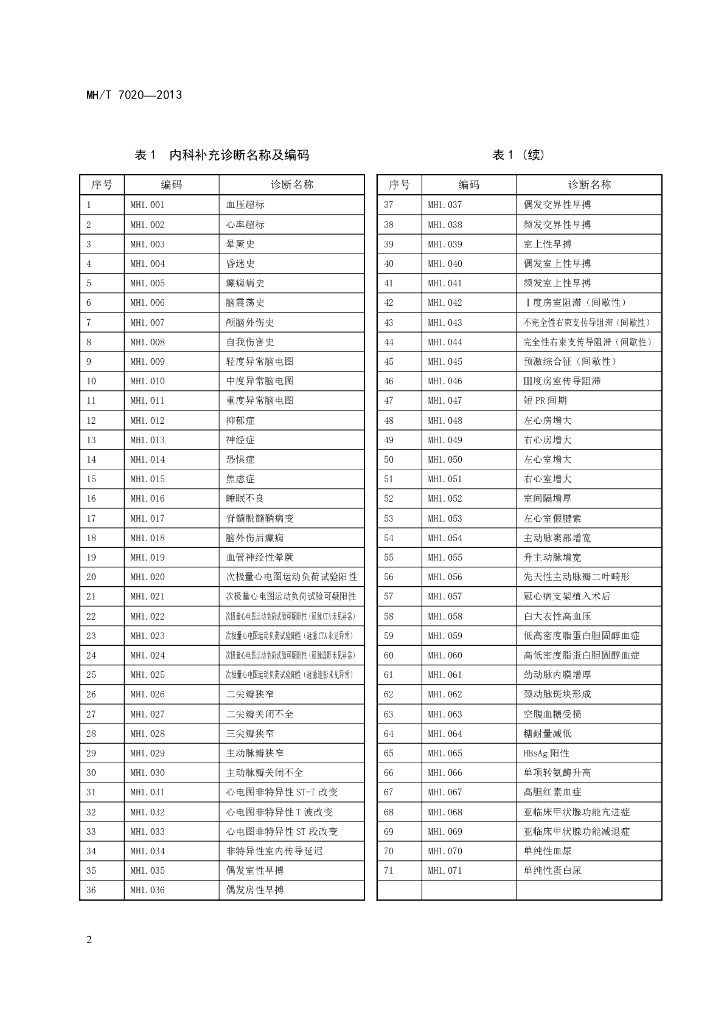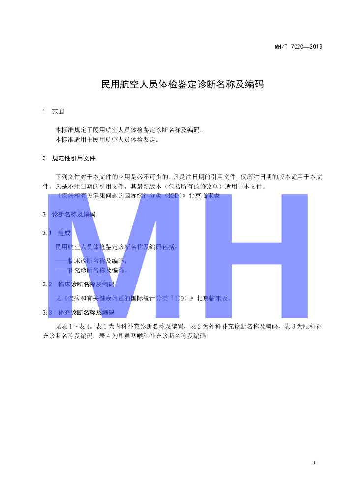 MH/T 7020-2013 民用航空人员体检鉴定诊断名称及编码