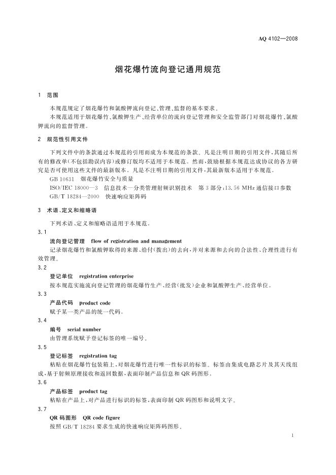 AQ 4102-2008 烟花爆竹流向登记通用规范