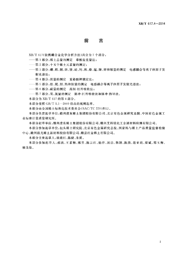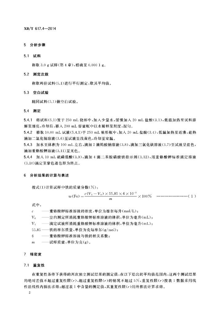 XB/T 617.4-2014 钕铁硼合金化学分析方法 第4部分:铁量的测定重铬酸钾滴定法