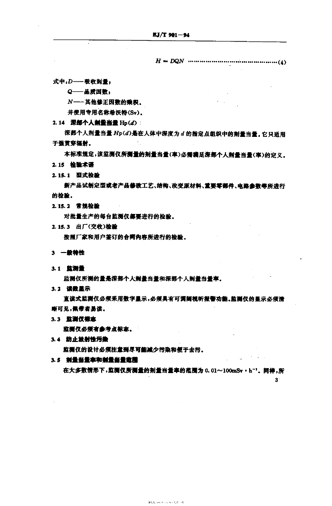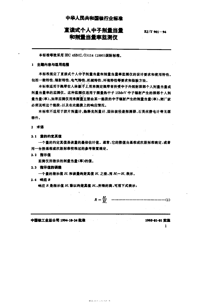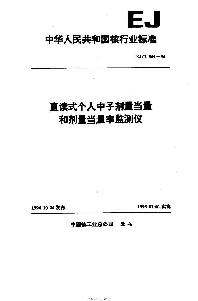 EJ/T 901-1994 直读式个人中子剂量当量和剂量当量率监测仪