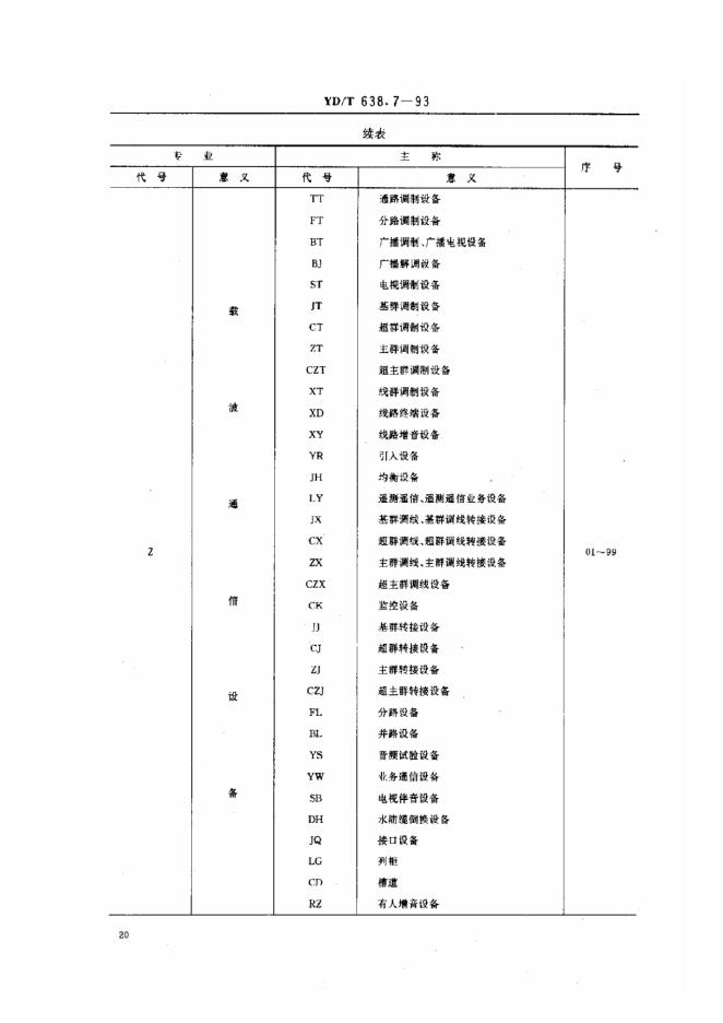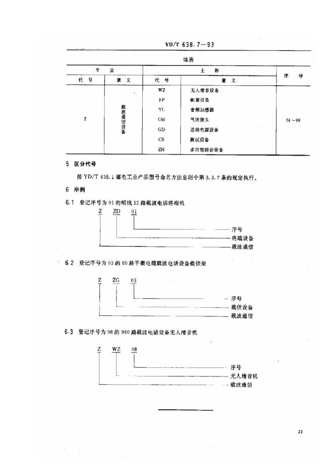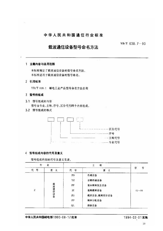 YD/T 638.7-1993 载波通信设备型号命名方法