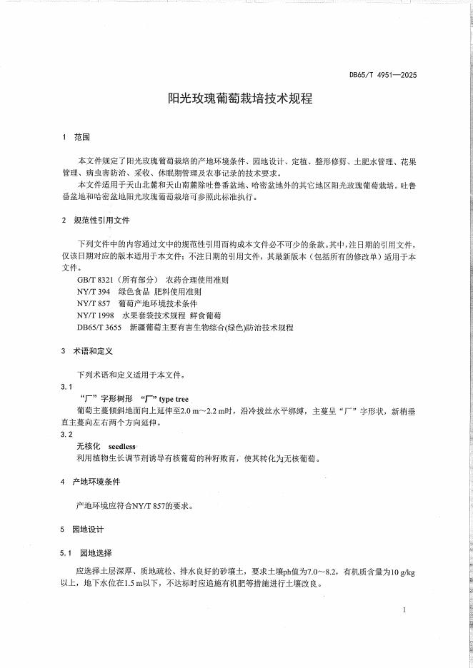 DB65/T 4951-2025 阳光玫瑰葡萄栽培技术规程