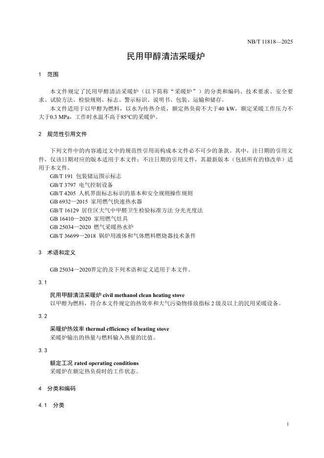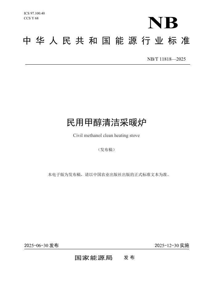 NB/T 11818-2025 民用甲醇清洁采暖炉