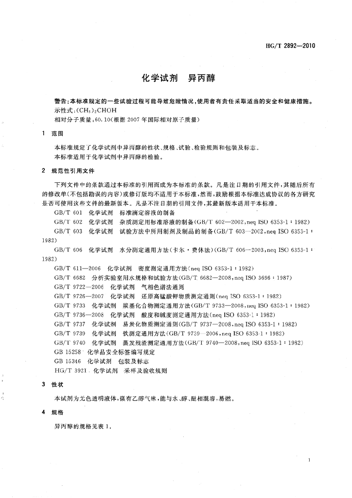 HG/T 2892-2010 代替 HG/T 2892-1997 化学试剂 异丙醇