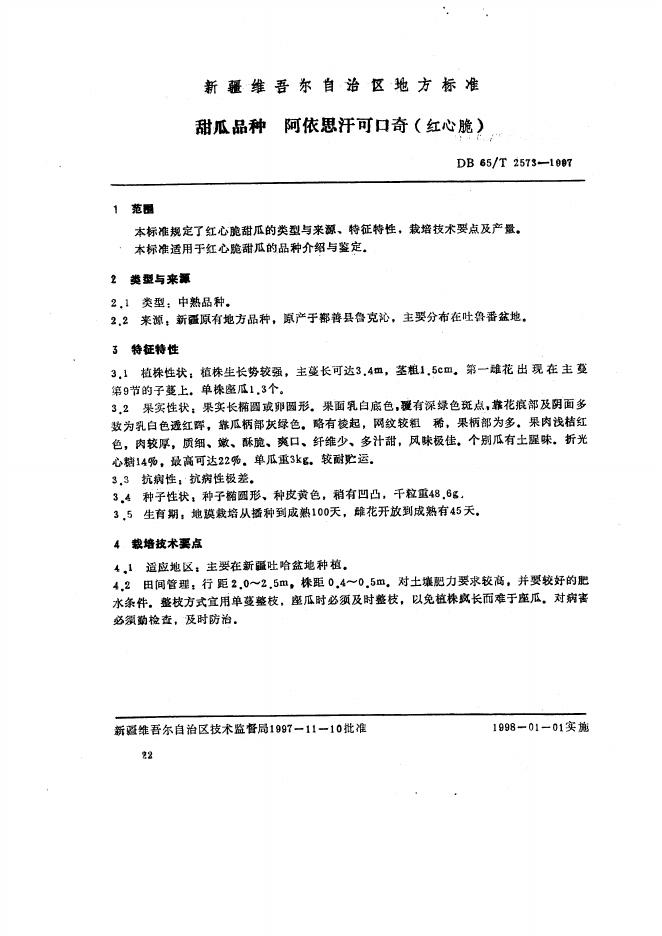 DB65/T 2573-1997 甜瓜品种 阿依思汗可口奇(红心脆)