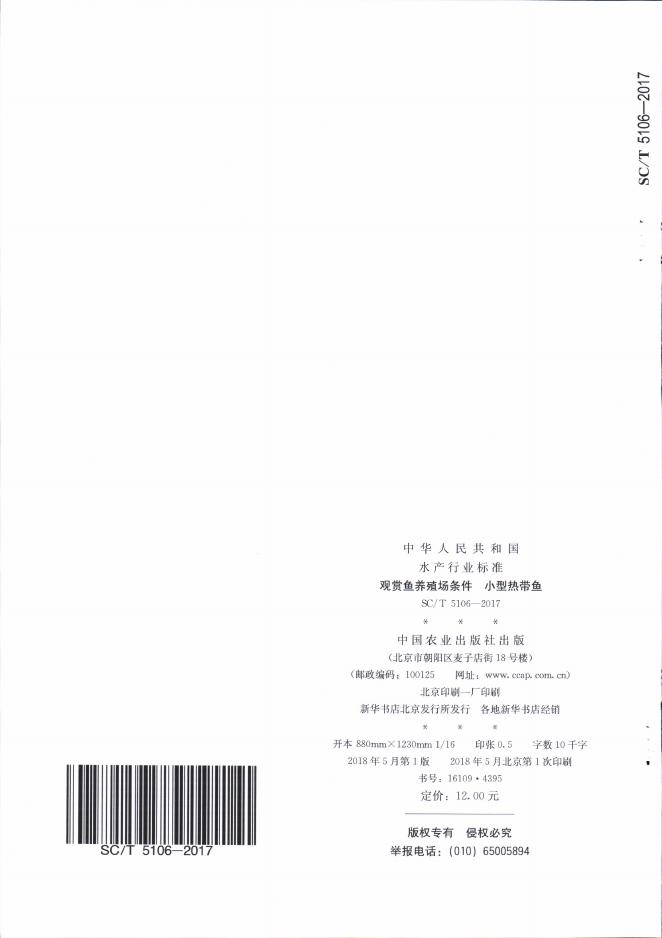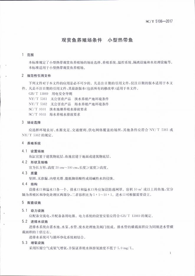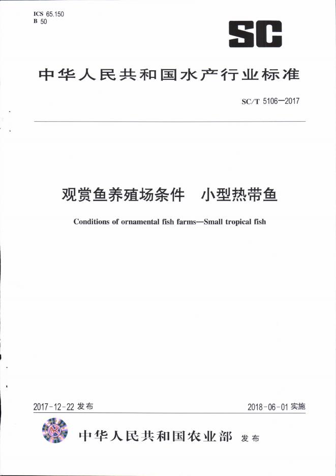 SC/T 5106-2017 观赏鱼养殖场条件 小型热带鱼