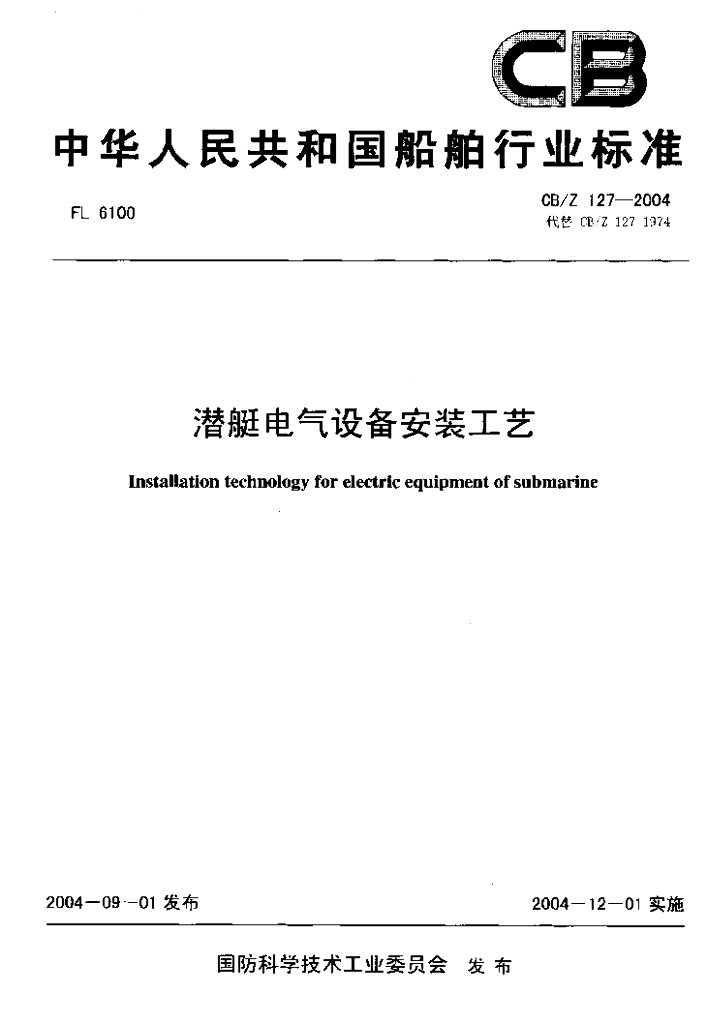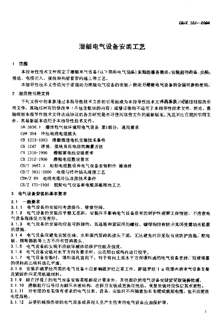 CB/Z 127-2004 潜艇电气设备安装工艺