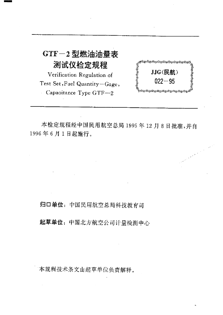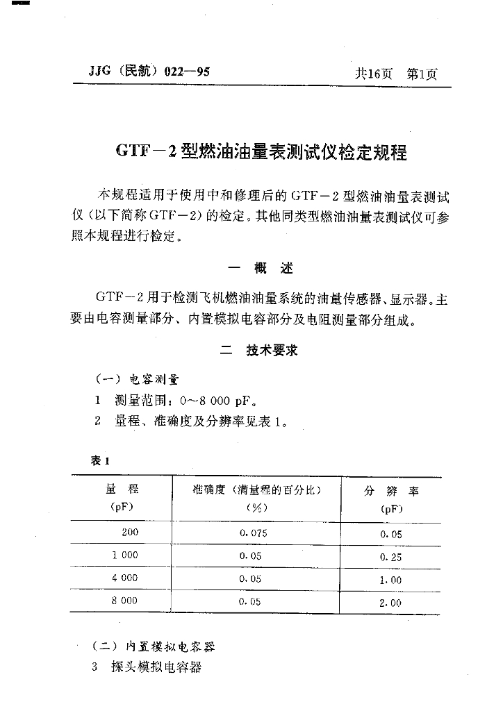 JJG(民航)022-1995 GTF-2型燃油油量表测试仪检定规程
