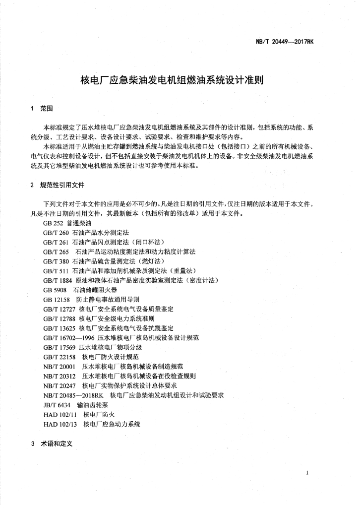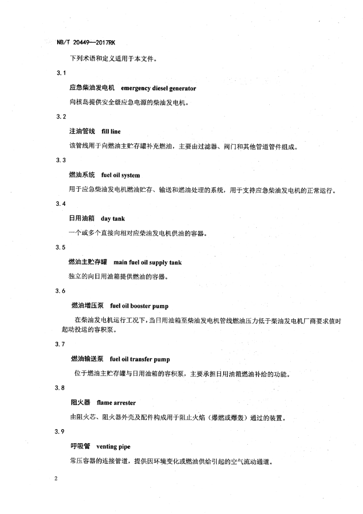 NB/T 20449-2017RK 核电厂应急柴油发电机组燃油系统设计准则