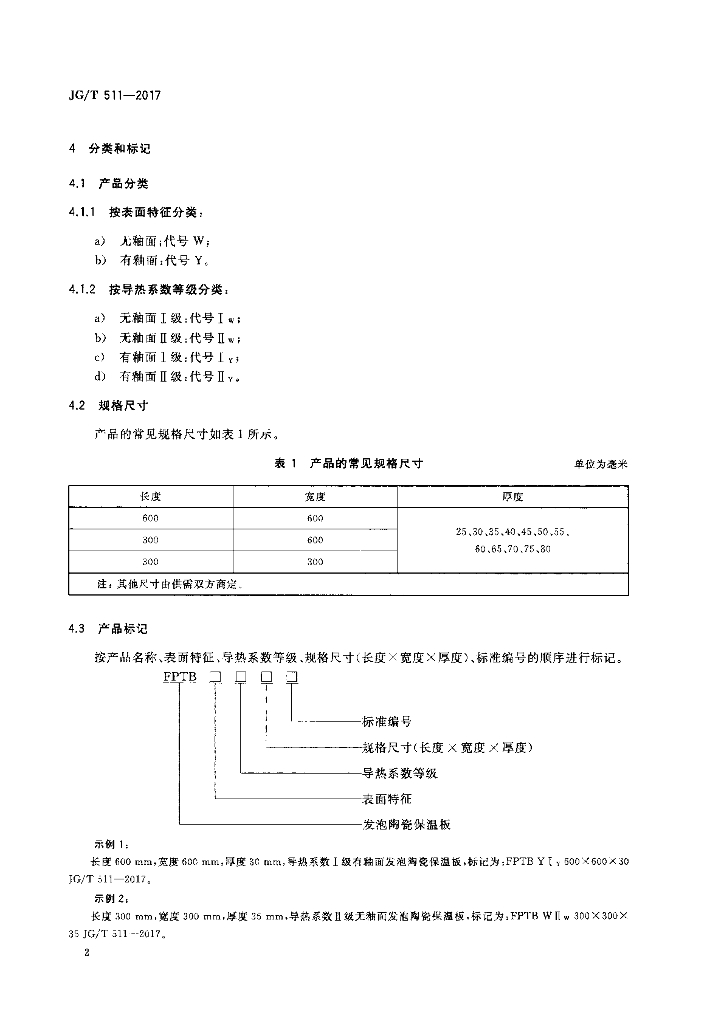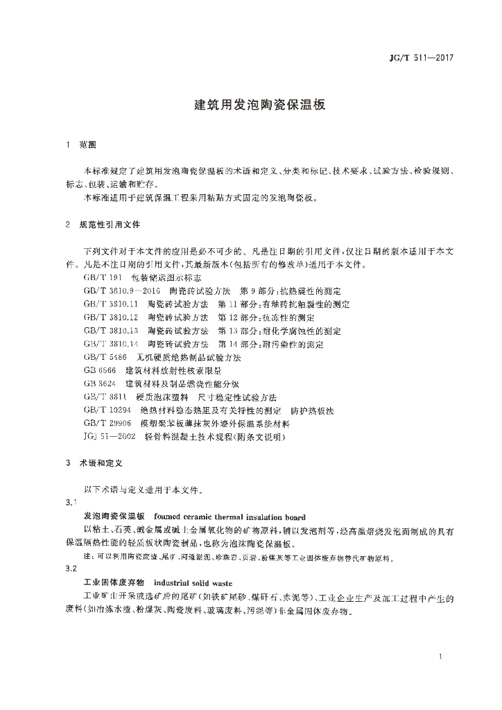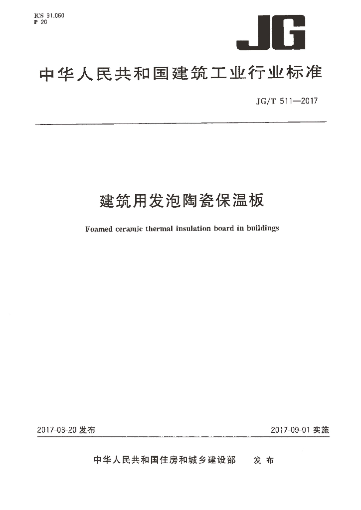 JG/T 511-2017 建筑用发泡陶瓷保温板