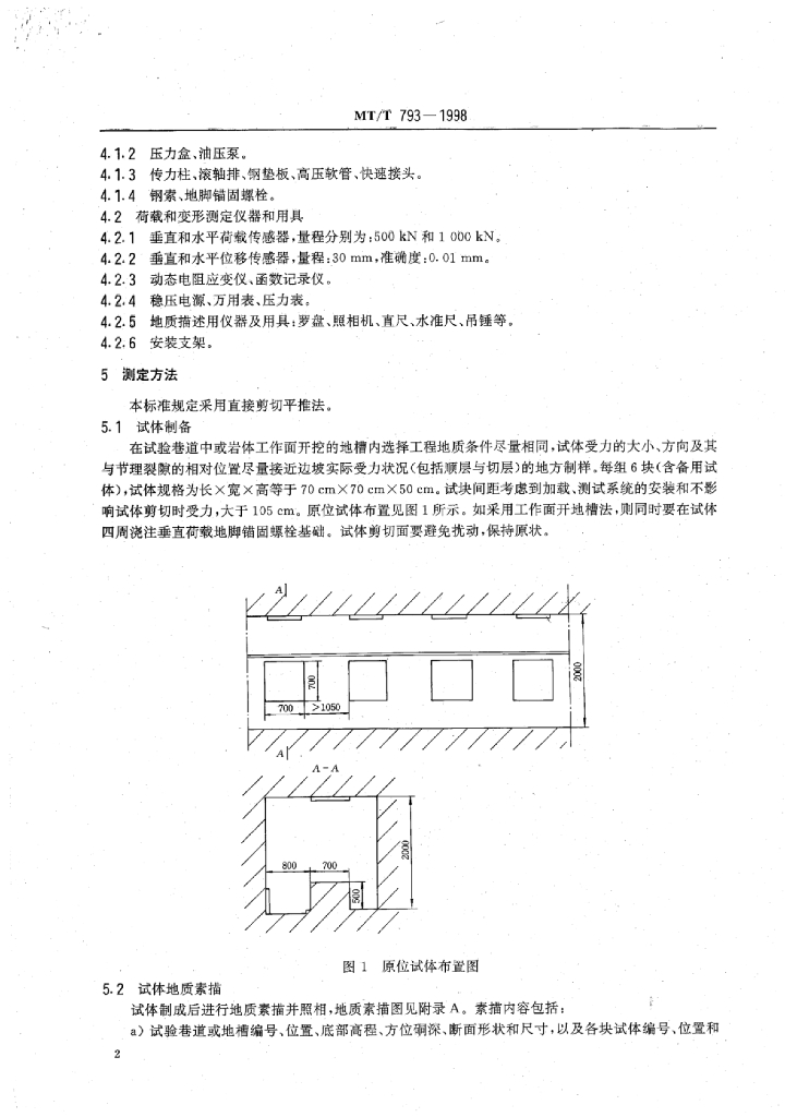 MT/T 793-1998 岩体原位抗剪强度的测定