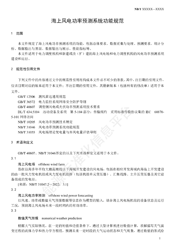 NB/T 11577-2024 海上风电功率预测系统功能规范