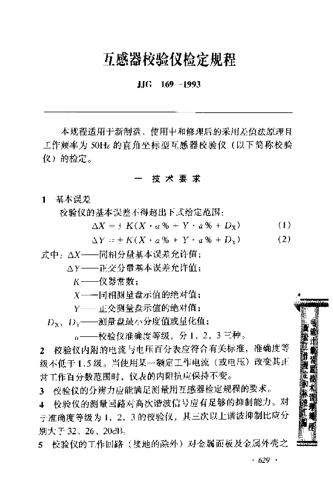 JJG 169-1993 互感器校验仪检定规程