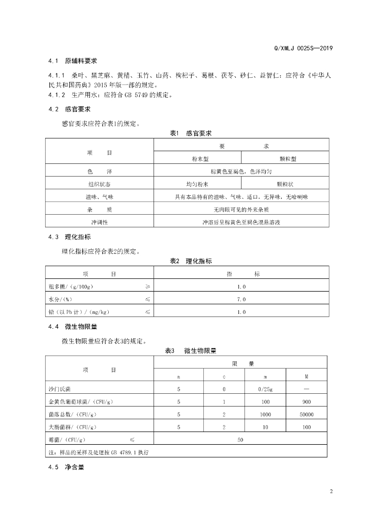 Q/XMLJ 0025S-2019 桑叶黑芝麻固体饮料