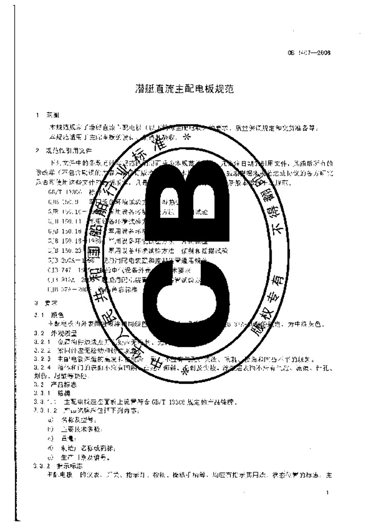 CB 1407-2008 潜艇直流主配电板规范