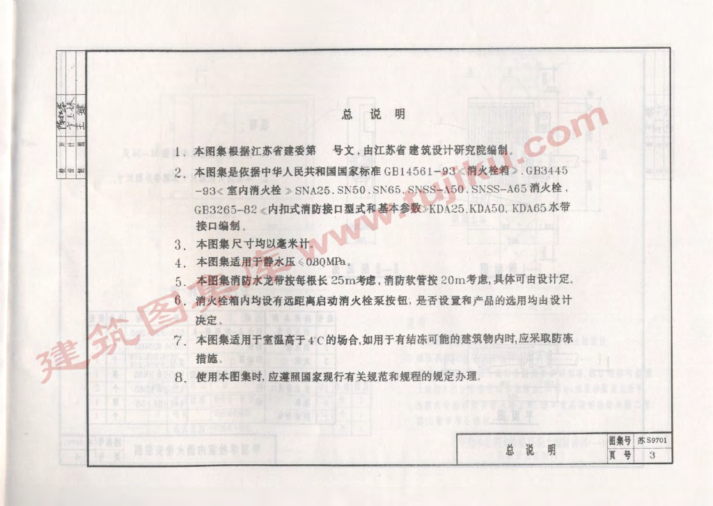 苏S9701 室内消火栓安装详图图集