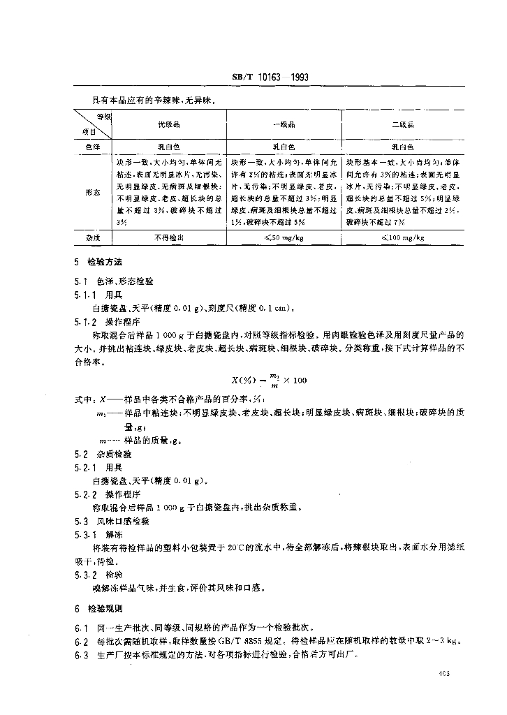 SB/T 10163-1993 冷冻辣根