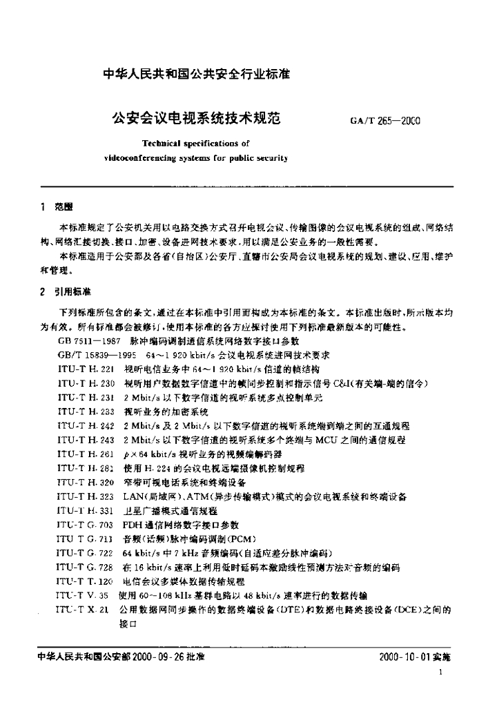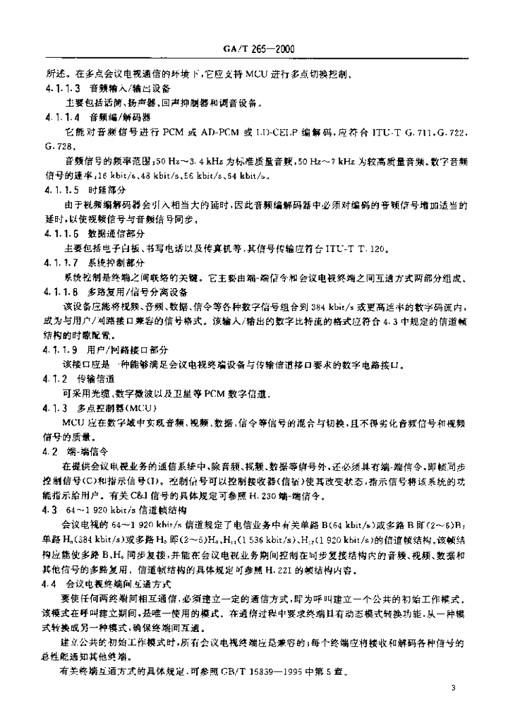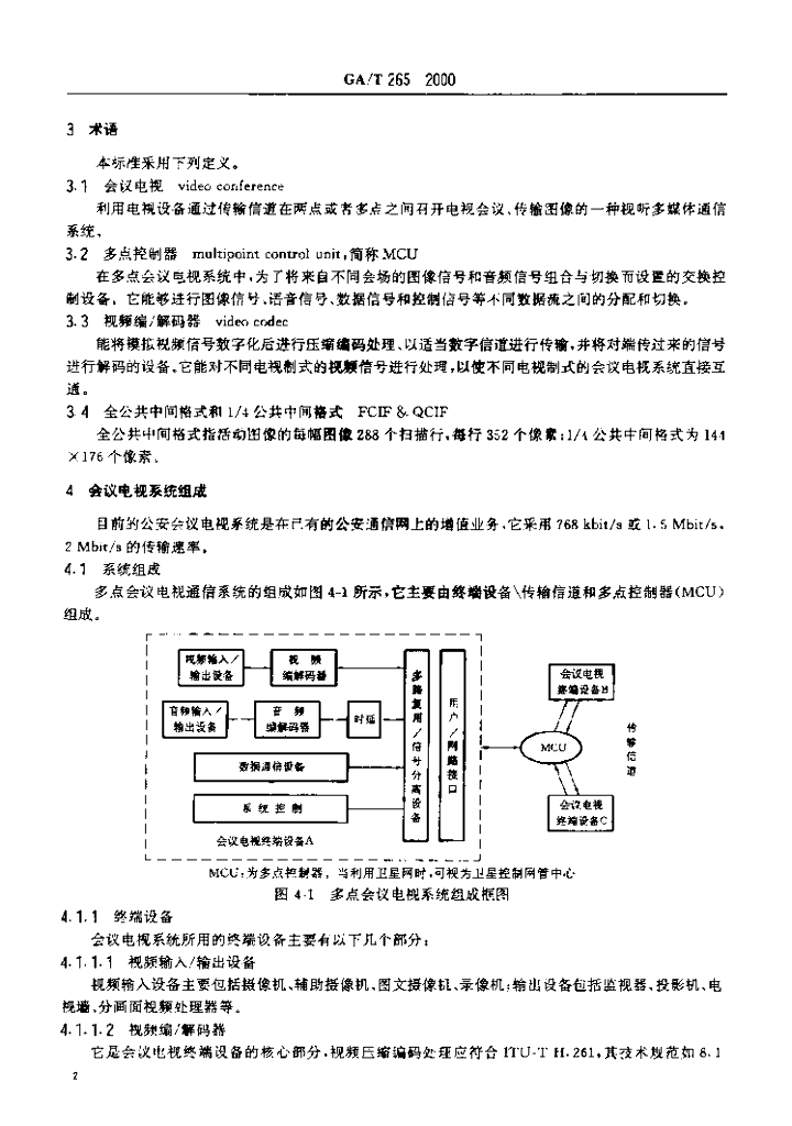GA/T 265-2000 公安会议电视系统技术规范