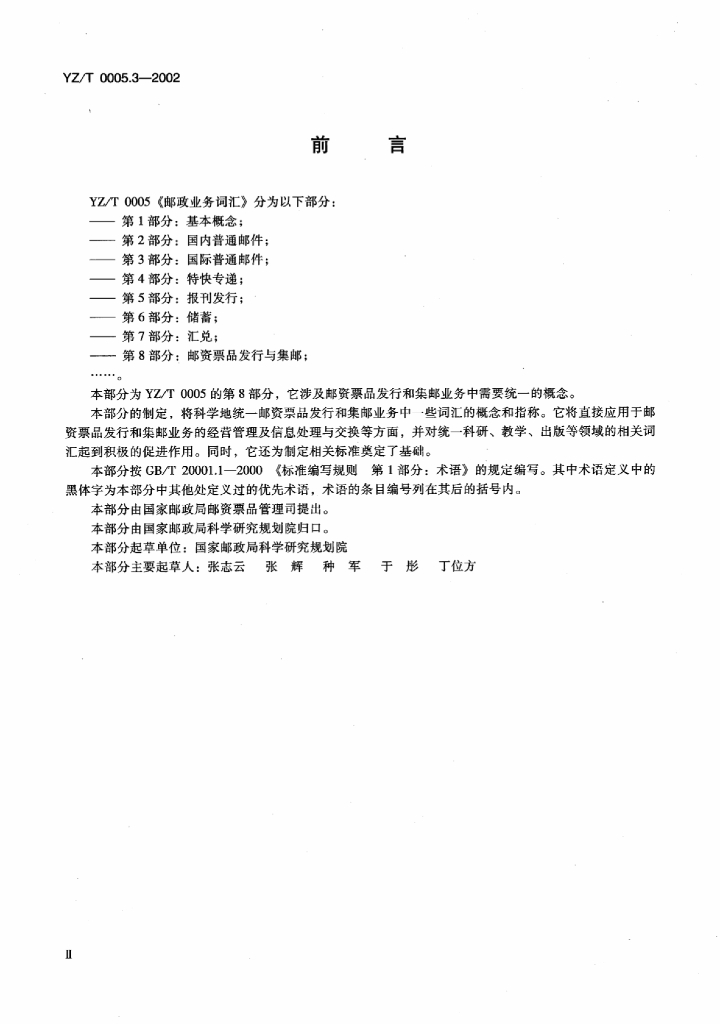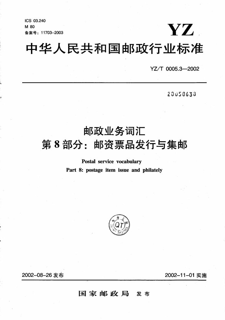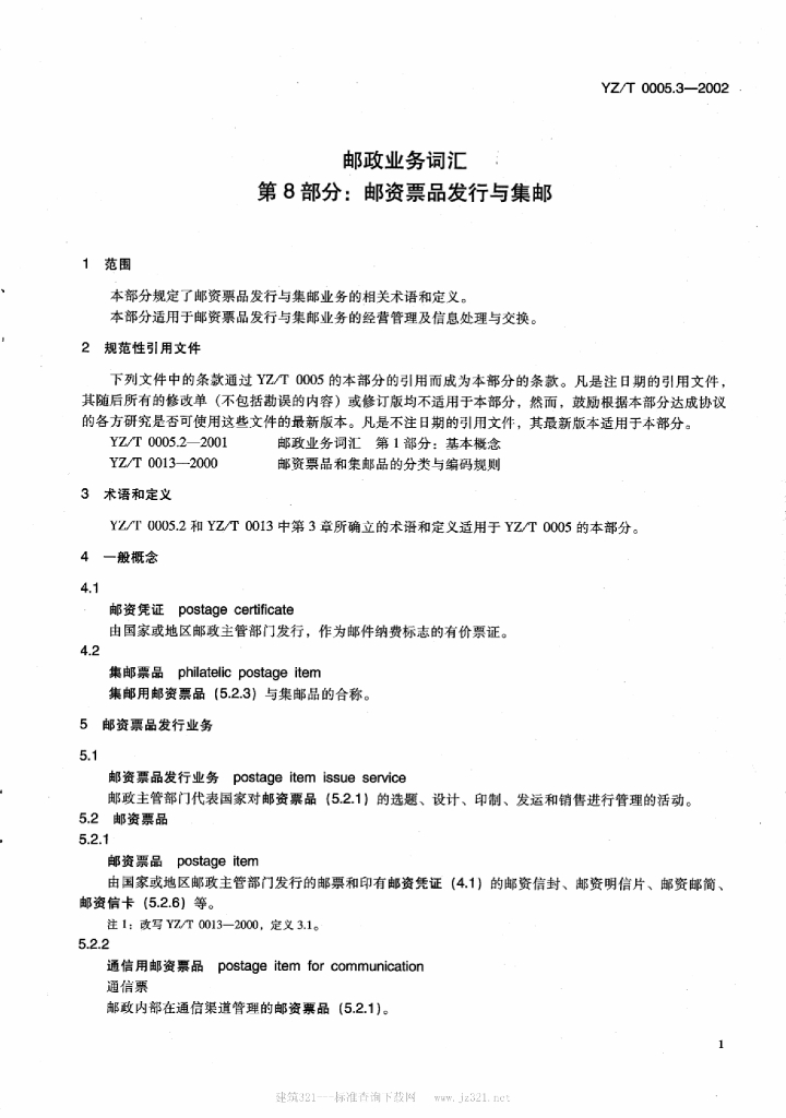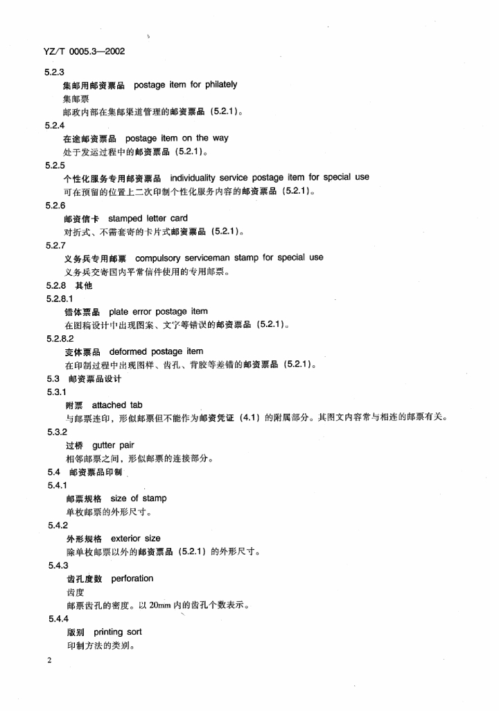 YZ/T 0005.3-2002 邮政业务词汇 第8部分:邮资票品发行与集邮