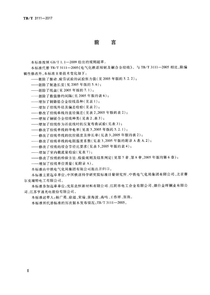 铁科院标准所、中铁电气化局集团有限公司、北京赛尔克瑞特电工有限公司、沈阳北恒公司、江阴市电工合金有限公司、烟台金晖铜业有限公司、江苏亨通光电