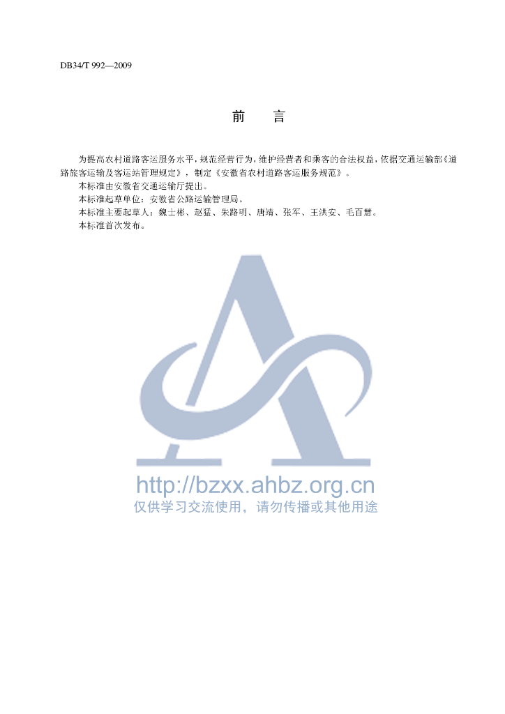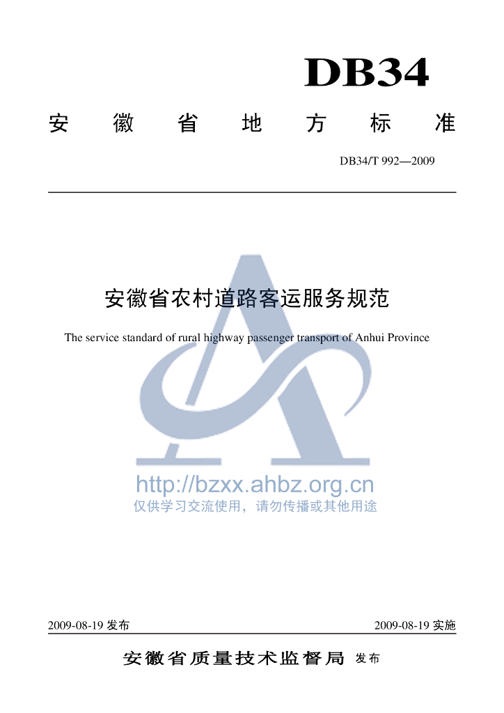 DB34/T 992-2009 安徽省农村道路客运服务规范
