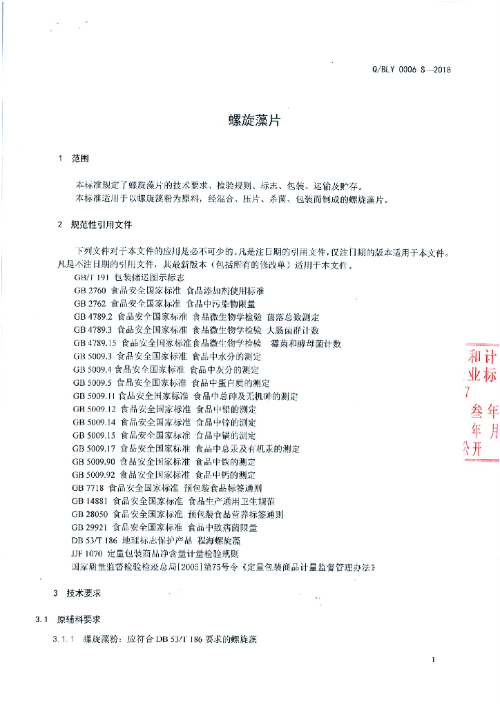 Q/BLY 0006S-2018 螺旋藻片