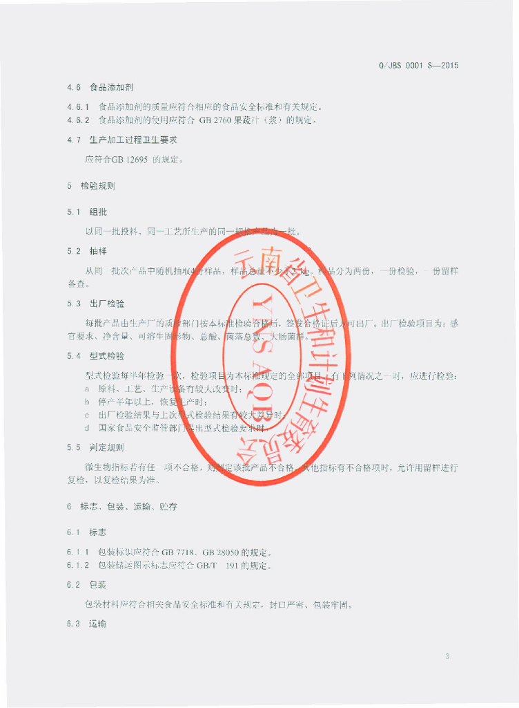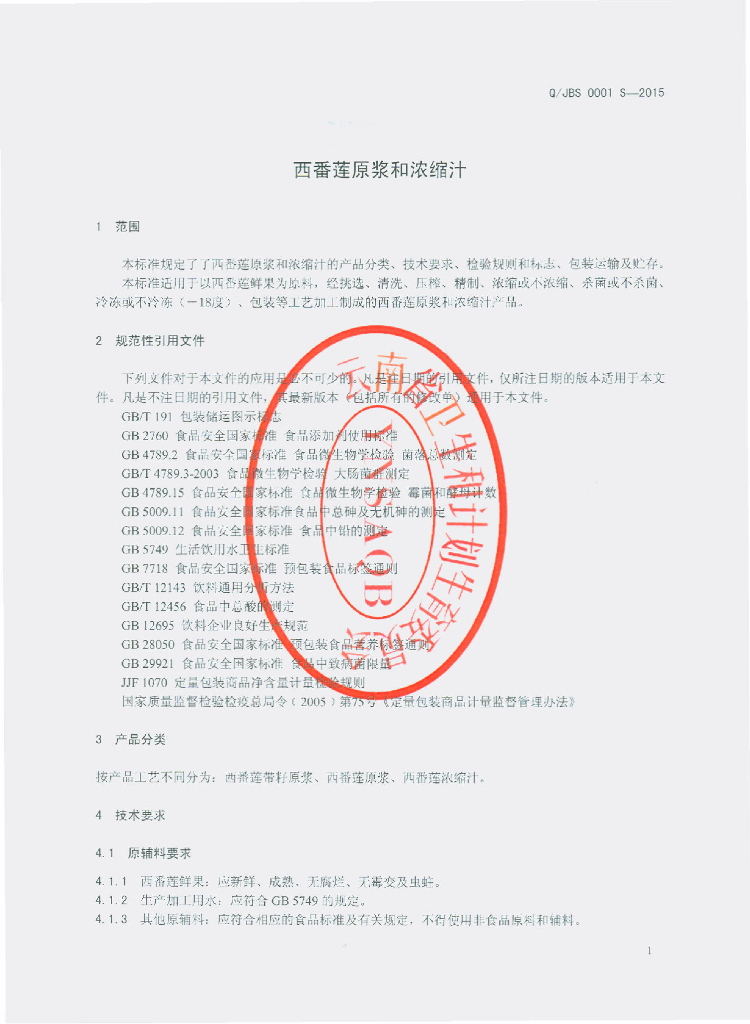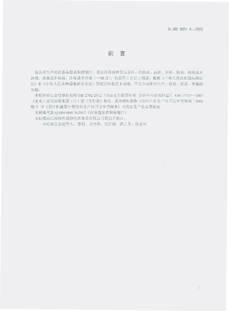 Q/JBS 0001S-2015 江城绿色版纳生态食品有限公司 西番莲原浆和浓缩汁