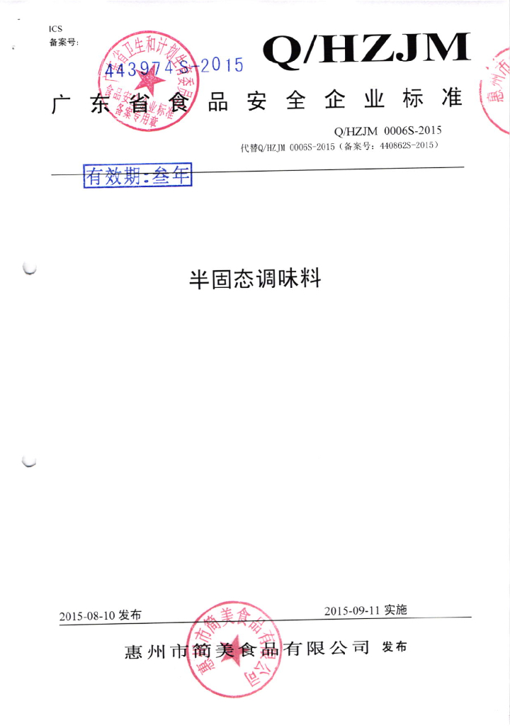Q/HZJM 0006S-2015 惠州市简美食品有限公司 半固态调味料