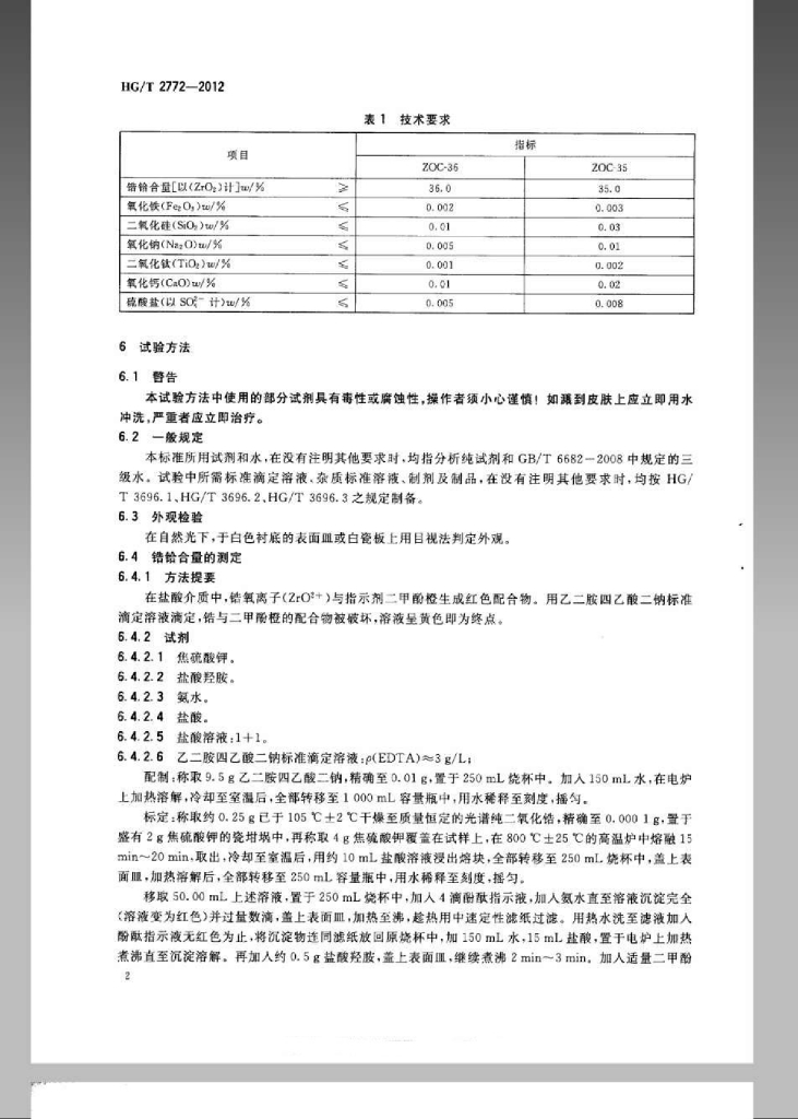 HG/T 2772-2012 代替 HG/T 2772-2004 工业八水合二氯氧化锆(氯氧化锆)