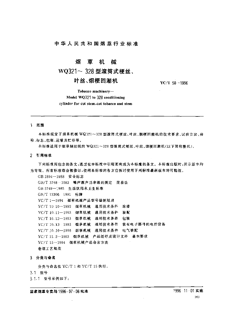 YC/T 58-1996 烟草机械WQ321~328型滚筒式梗丝、叶丝、烟梗回潮机