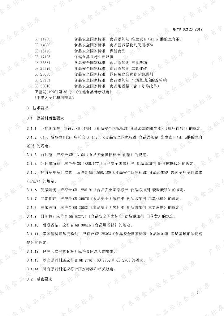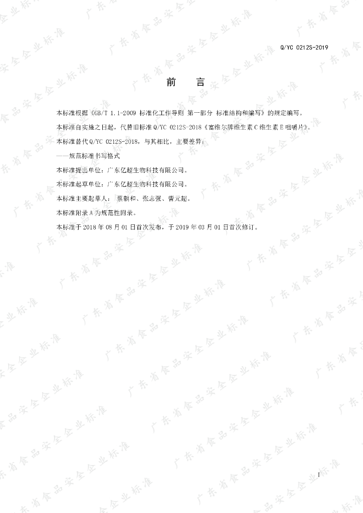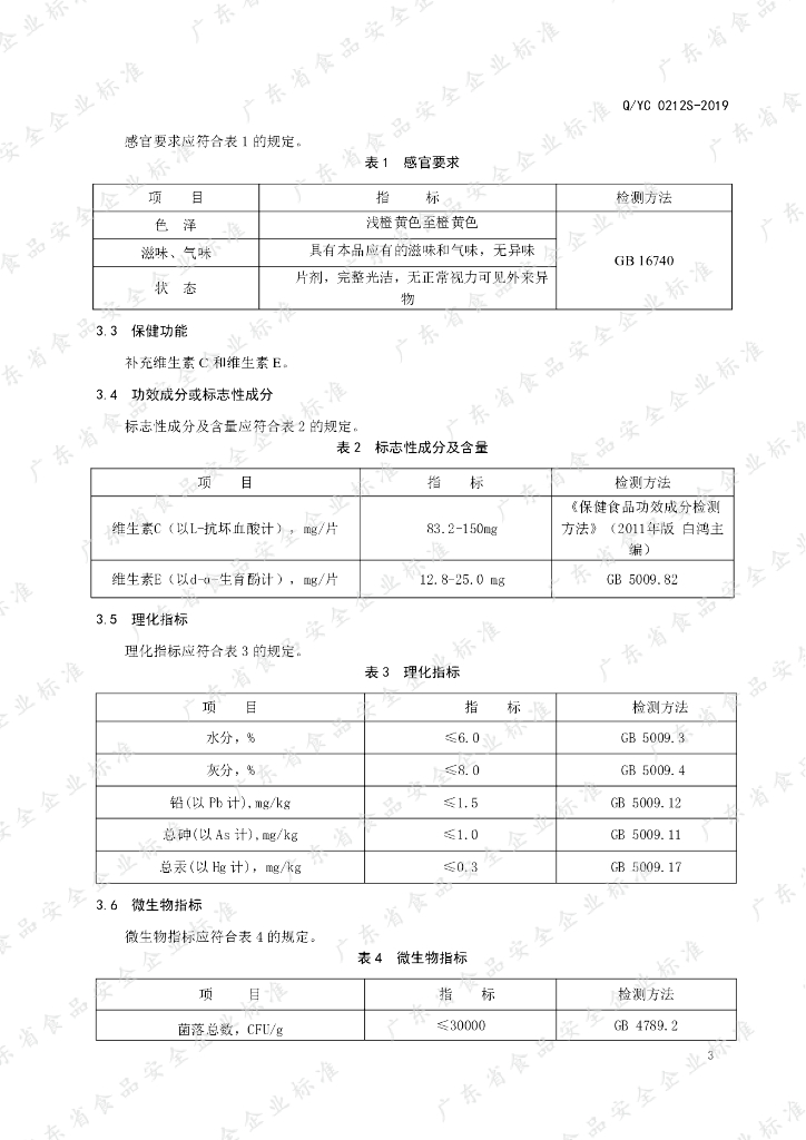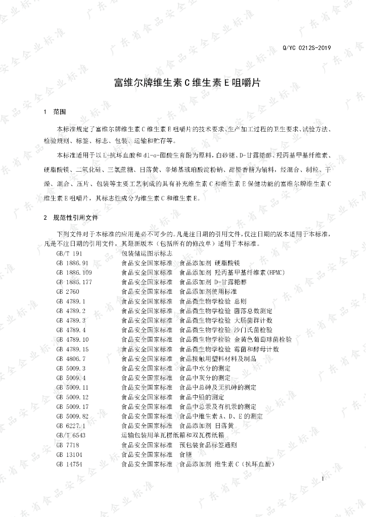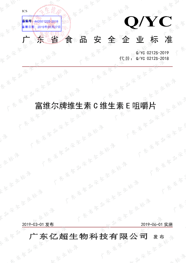Q/YC 0212S-2019 富维尔牌维生素C维生素E咀嚼片