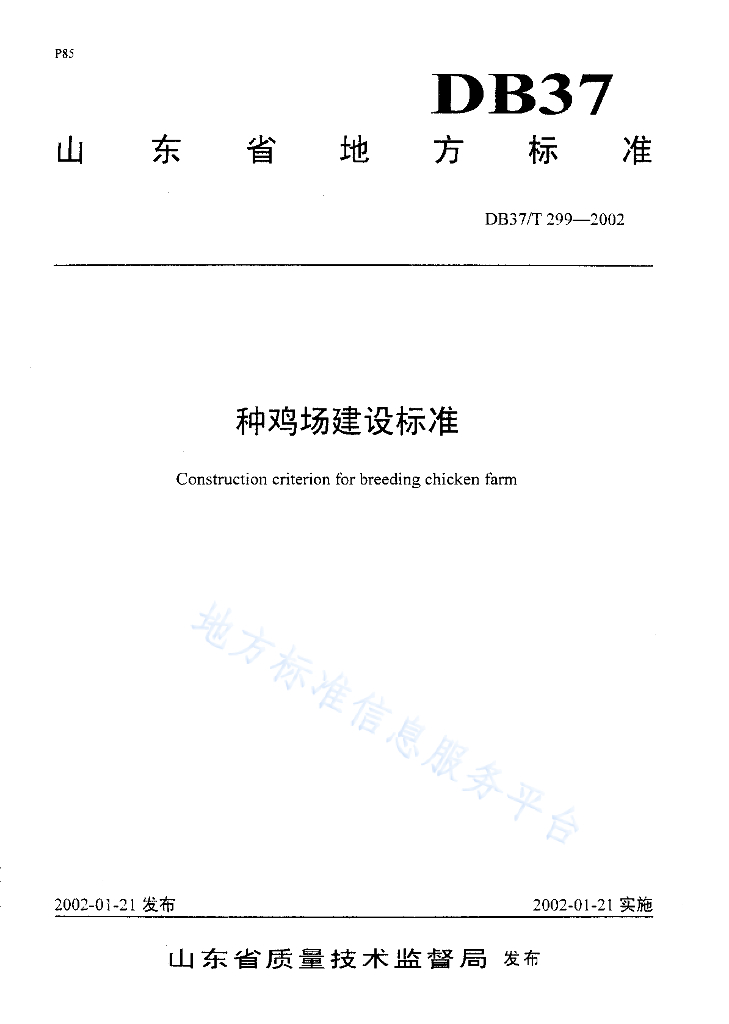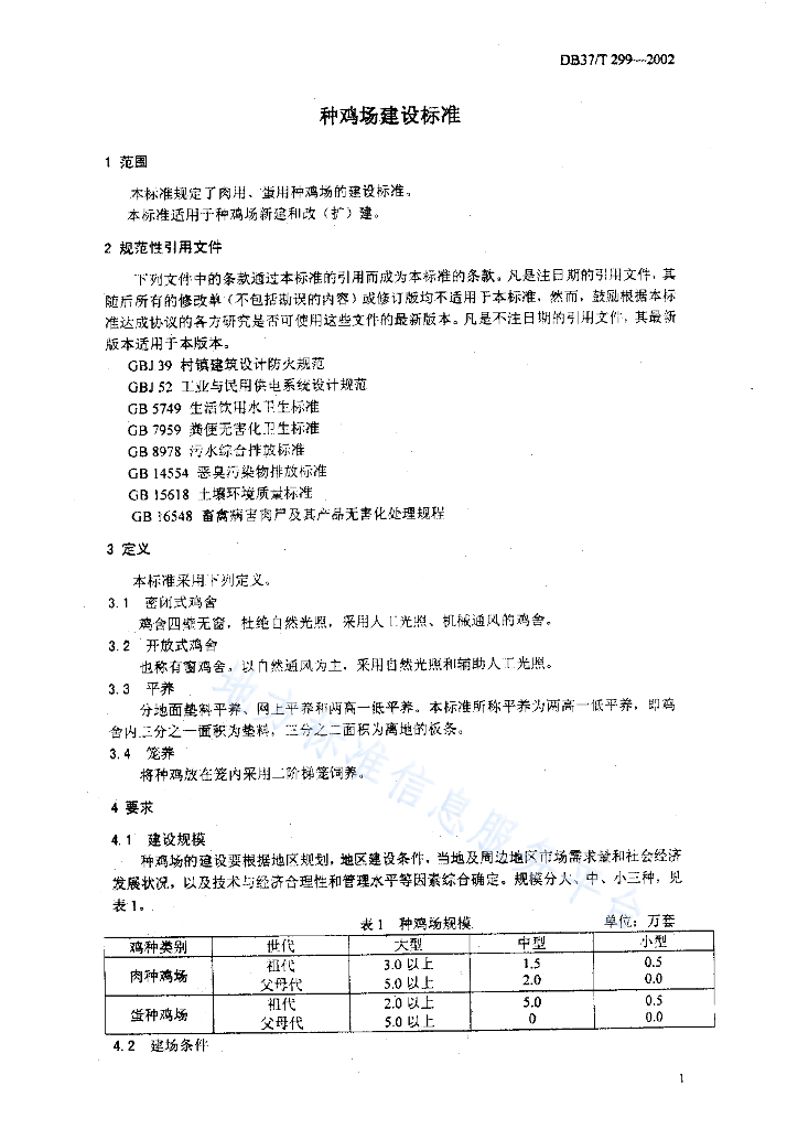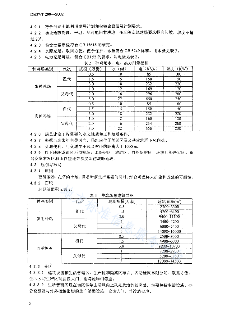 DB37/T 299-2002 种鸡场建设标准