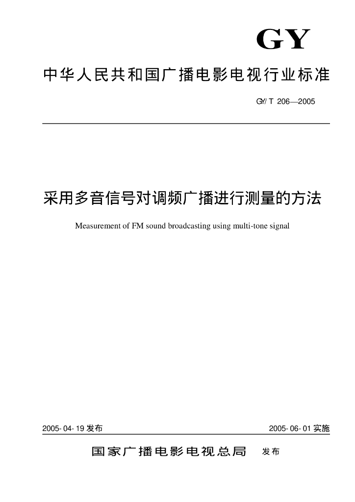 GY/T 206-2005 采用多音信号对调频广播进行测量的方法