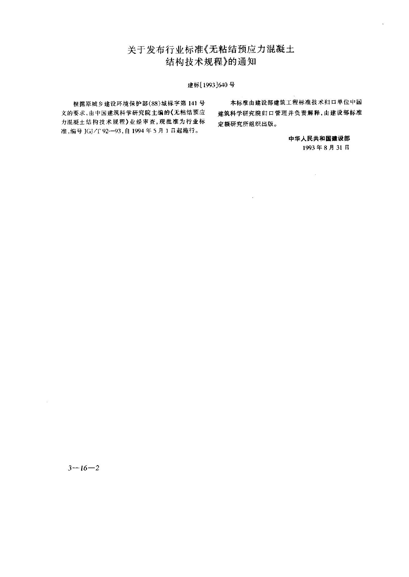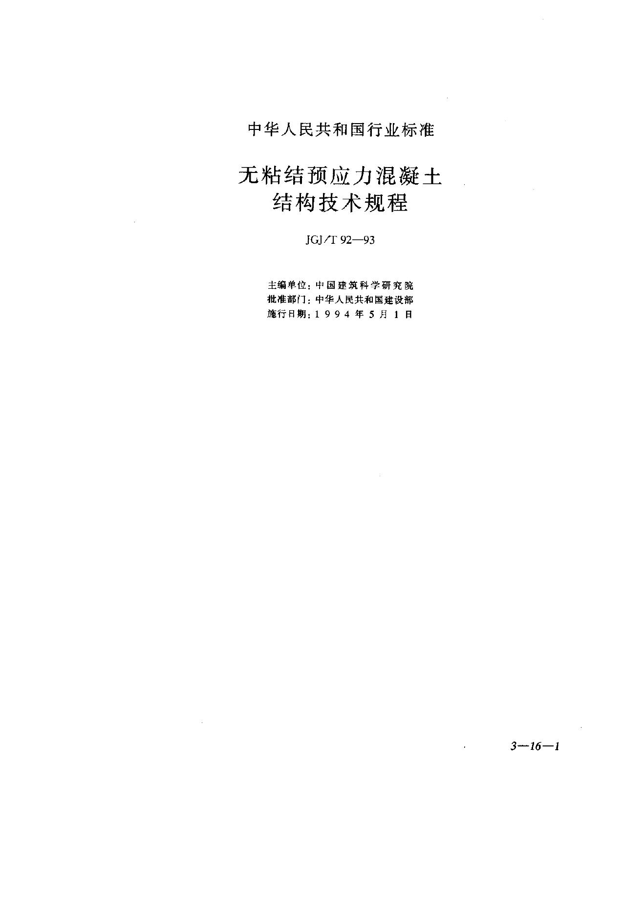 JGJ/T 92-1993 无粘结预应力混凝土结构技术规程
