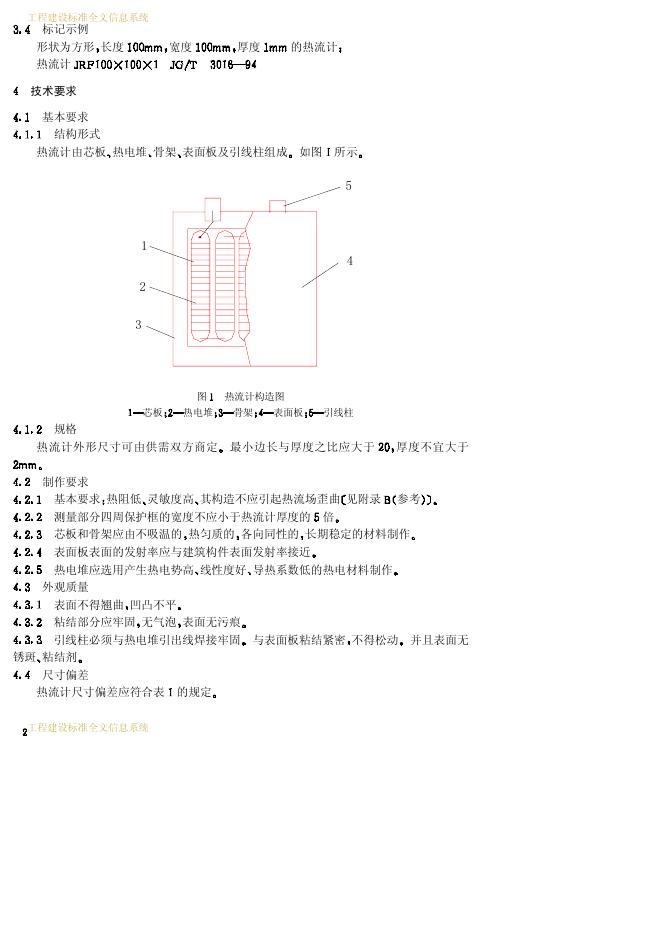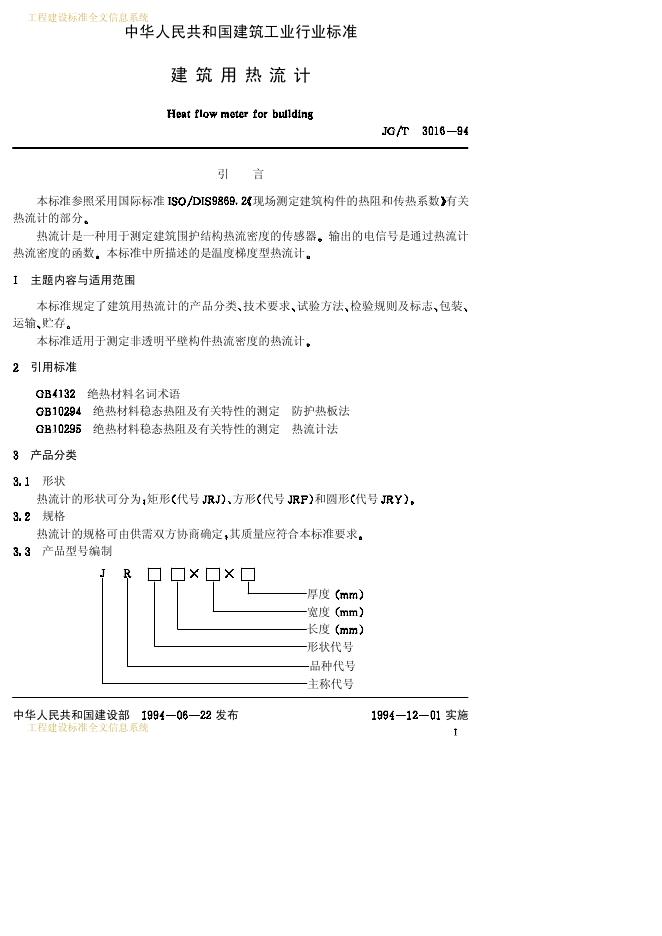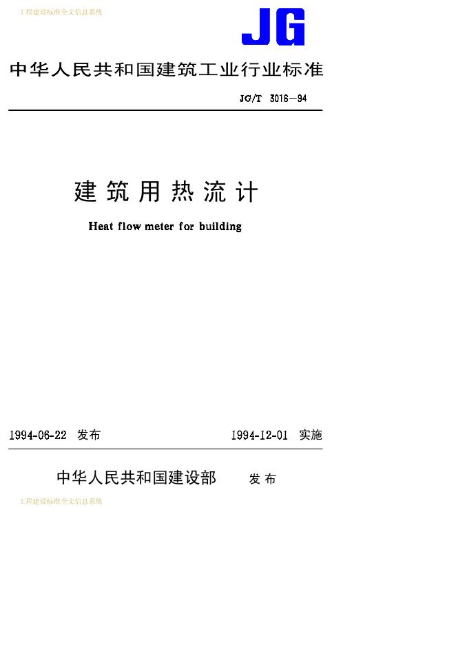 JG/T 3016-1994 建筑用热流计