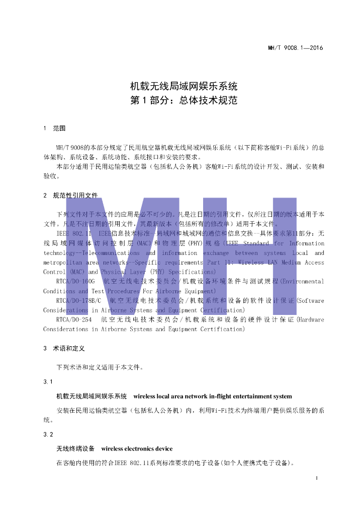 MH/T 9008.1-2016 机载无线局域网娱乐系统 第1部分:总体技术规范