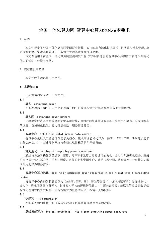 TC609 6-2025-04 全国一体化算力网 智算中心算力池化技术要求