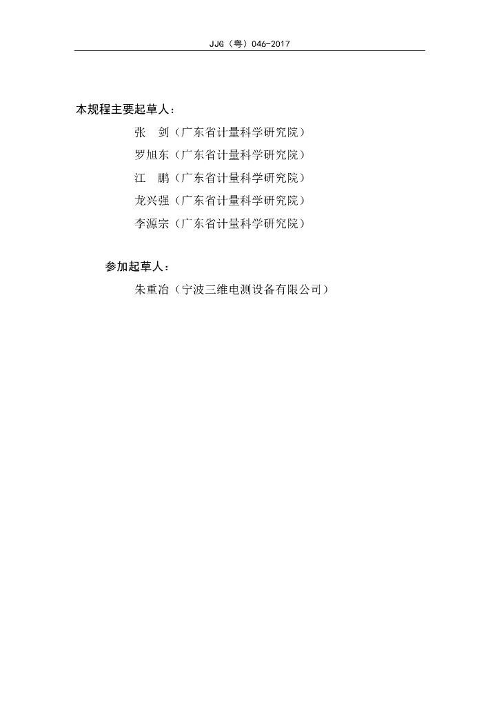 张剑(广东省计量科学研究院)、罗旭东(广东省计量科学研究院)、江鹏(广东省计量科学研究院)、龙兴强(广东省计量科学研究院)、李源宗(广东省计量科学研究院)、朱重冶(宁波三维电测设备有限公司)