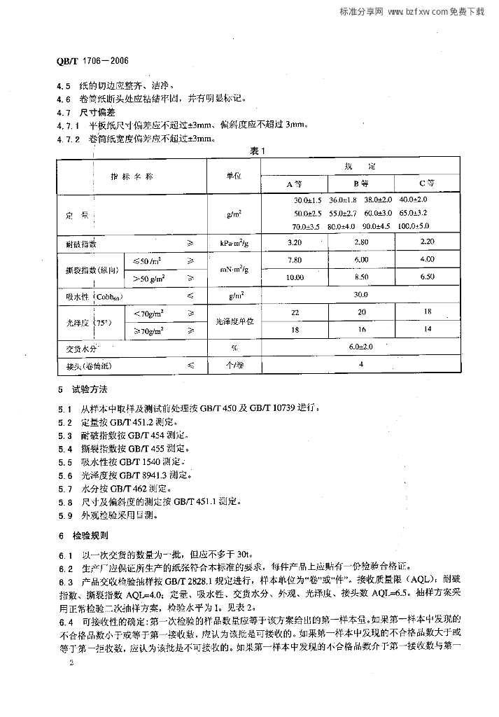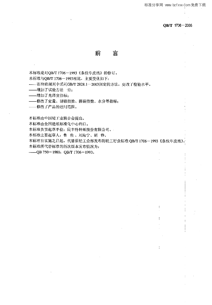 QBT 1706-2006 条纹牛皮纸