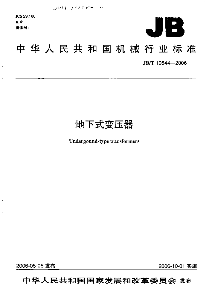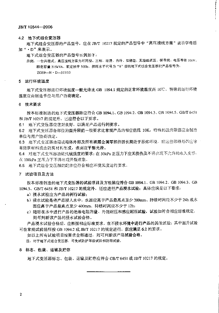 JB/T 10544-2006 地下式变压器