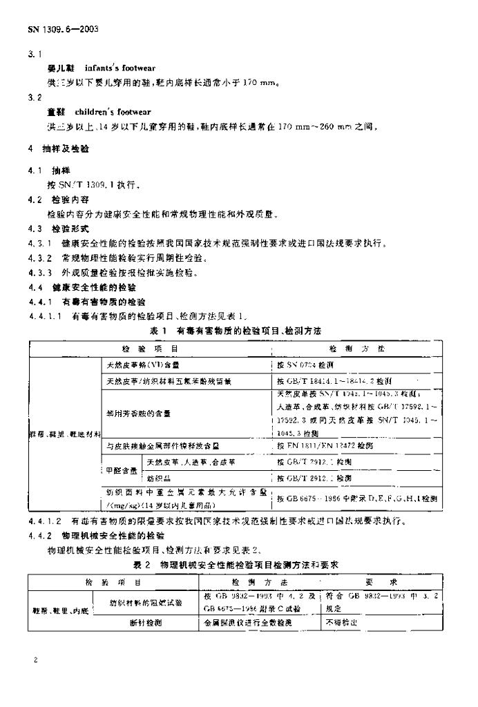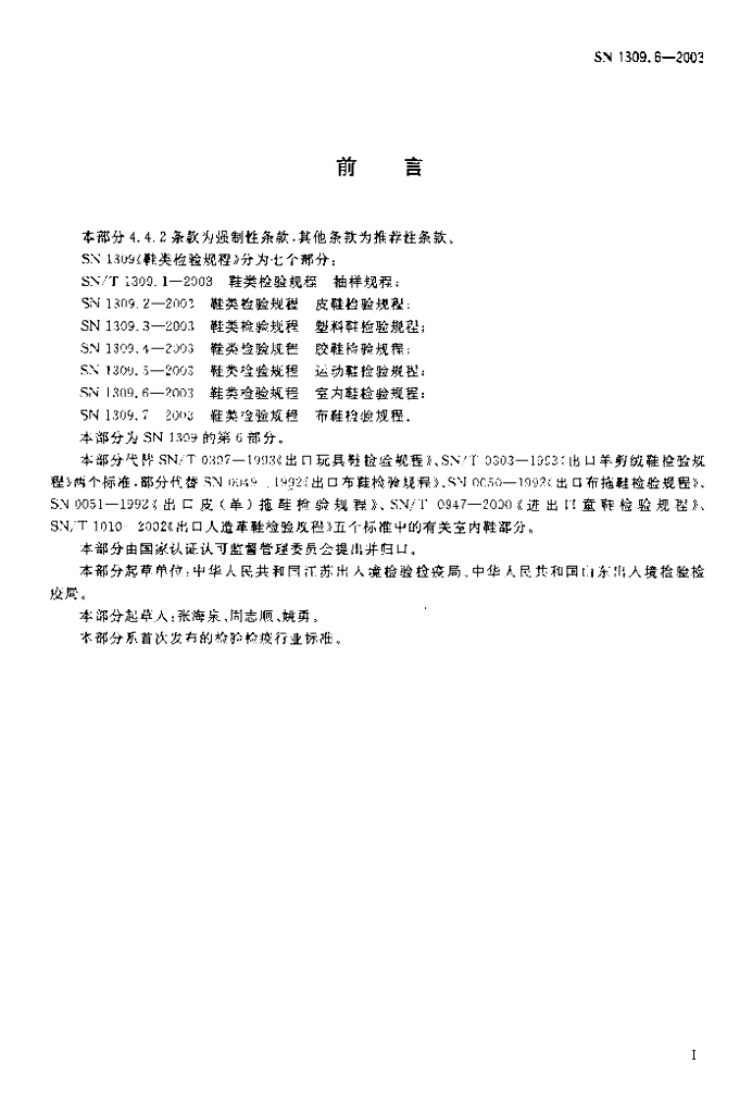 SN 1309.6-2003 鞋类检验规程室内鞋检验规程