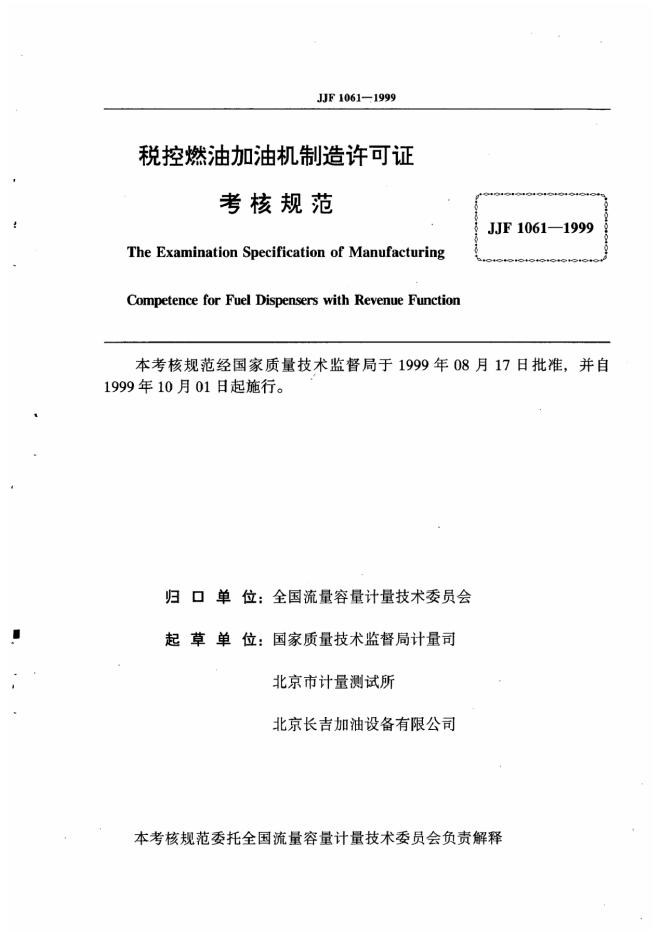 国家质量技术监督局计量司、北京市计量测试所、北京长吉加油设备有限公司