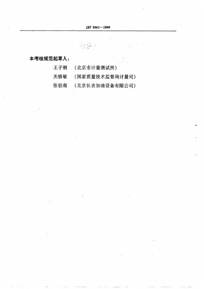 王子钢(北京市计量测试所)、关慎敏(国家质量技术监督局计量司)、张伯南(北京长吉加油设备有限公司)