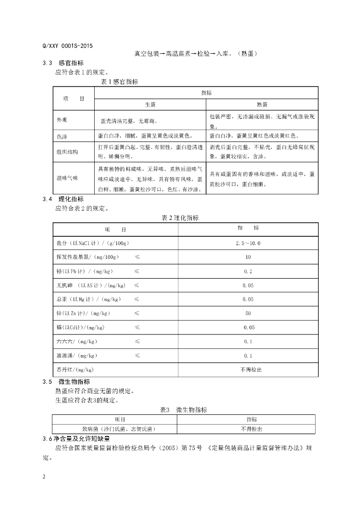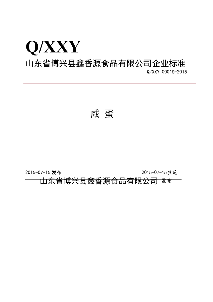 Q/XXY 0001S-2015 山东省博兴县鑫香源食品有限公司 咸蛋